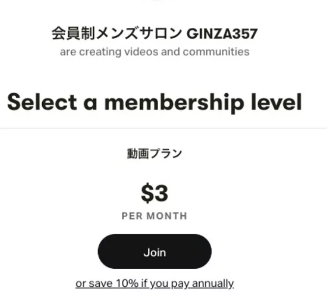 そのままJoinから支援していただくと月額制となりますが、下に表示されている[or save 10% if you pay annually]を選択していただくと、年間一括支払いになり10%割引が適応されます。