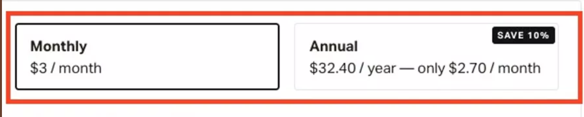 4・Monthly(月額3$)かAnnual(年額32.4$)を選択